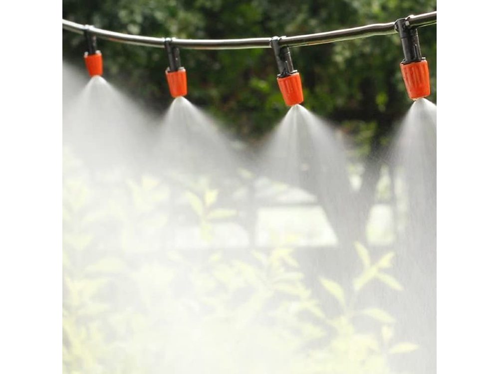 Pur si simplu conectati cablul de apa si sistemul de irigare va porni automat si va incepe pulverizarea. Nu consuma energie electrica.